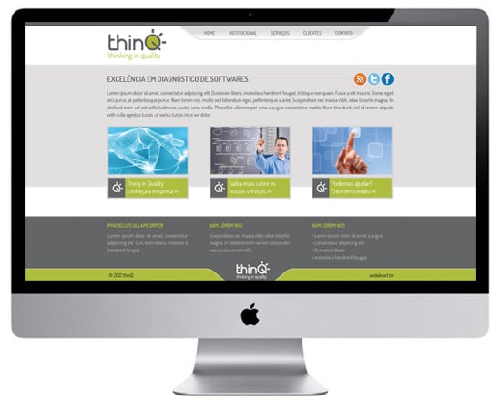 Criação de marca e layout da thinQ, empresa especializada em testes de desempenho de softwares, com intuito de garantir a qualidade dos mesmos e identificar possíveis otimizações.